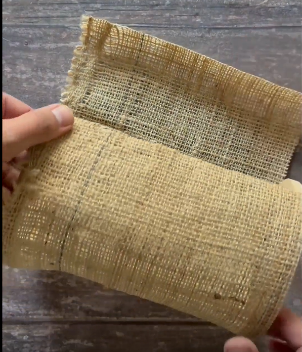 2.- En este caso utilizamos arpillera y varillas de madera. Un TIP espectacular: “pintamos” la arpillera con agua y un poco de laca para que se endurezca un poco.