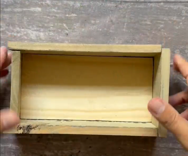 2.- Una vez que tenemos la “caja” formada vamos a empezar a darle un poco de onda con listoncitos cuadrados y redondos que también reciclamos del taller.