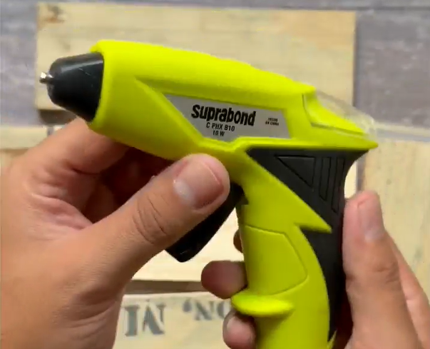 Materiales: Pistola Encoladora inalámbrica de Suprabond y cortes de madera.