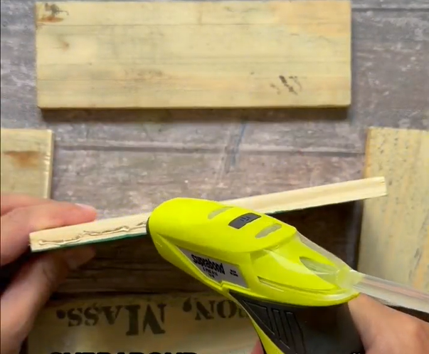 1.- Con los cortes de madera, armamos una caja, que vamos a unir con la Pistola Inalámbrica de Suprabond, ponemos adhesivo en los laterales de los cortes y vamos uniendo parte por parte.
