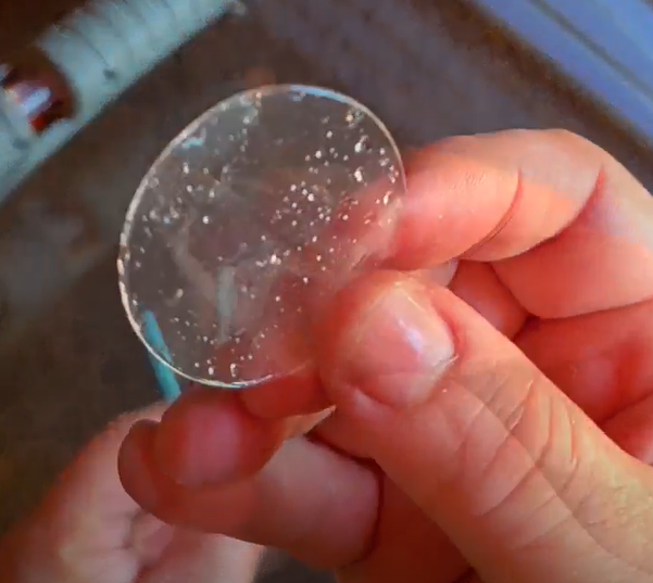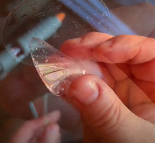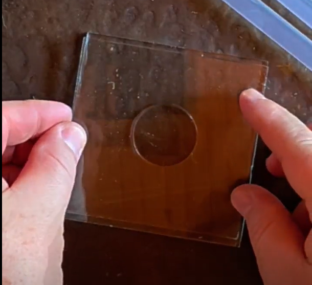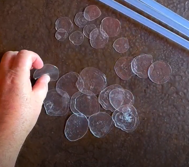 1.- Con la Pistola sobre un pedazo de vidrio, haces 3 descargas de Adhesivo, y luego le ponés el otro vidrio arriba haciendo presión. Lo llevas abajo del agua para que se desprenda mucho más rápido y fácil y así te quedan flexibles.