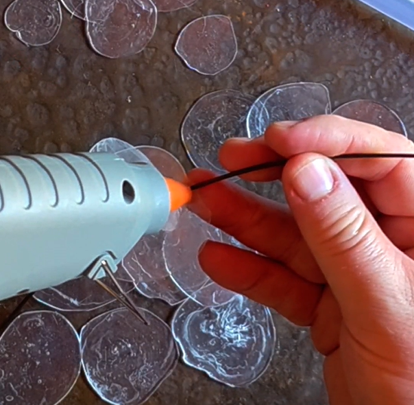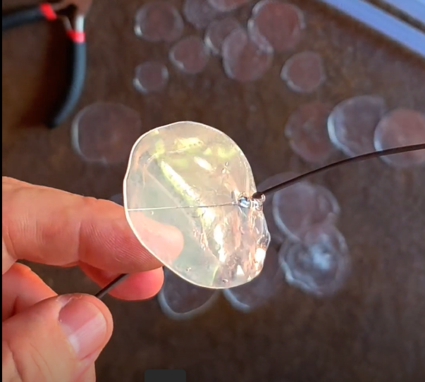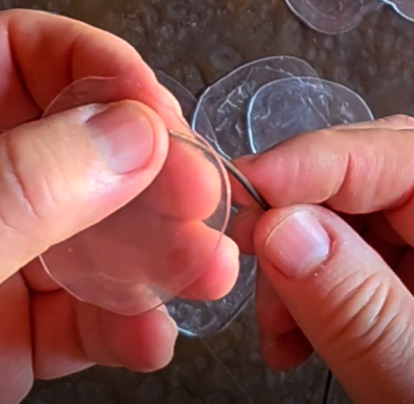 3.- Con una Pinza BULIT y un alambre flexible (TIP: el que es de fardo, lo compras en la ferretería), vas a ir perforando bien al borde las hojitas, yendo desde las más grandes, hasta las más chicas.