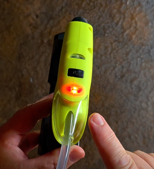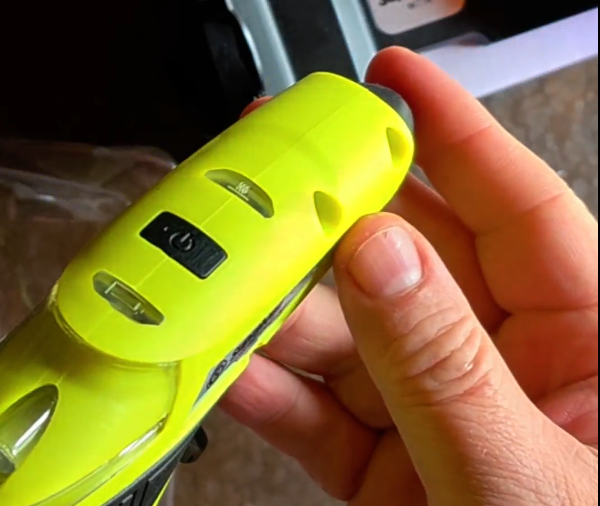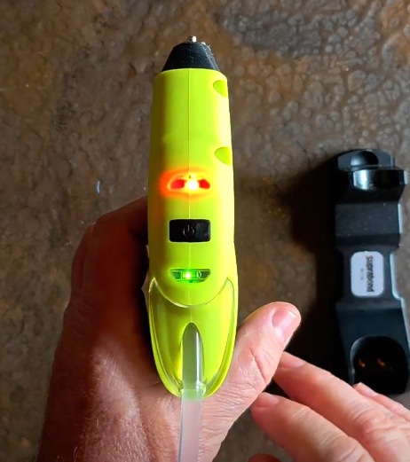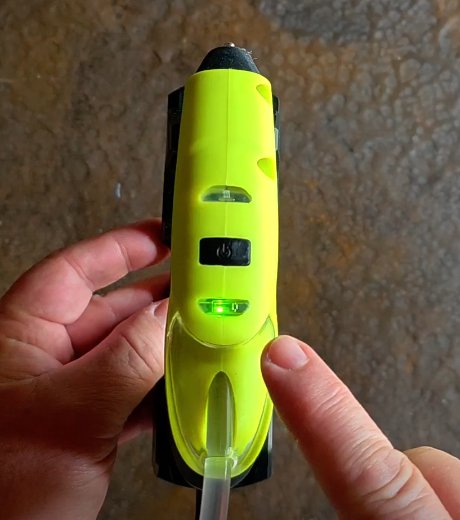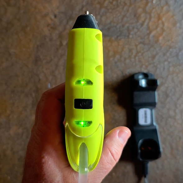 b) Se retira de la base, y se enciende con el interruptor. Se prende la luz verde para indicarte que ya podés trabajar.