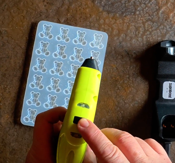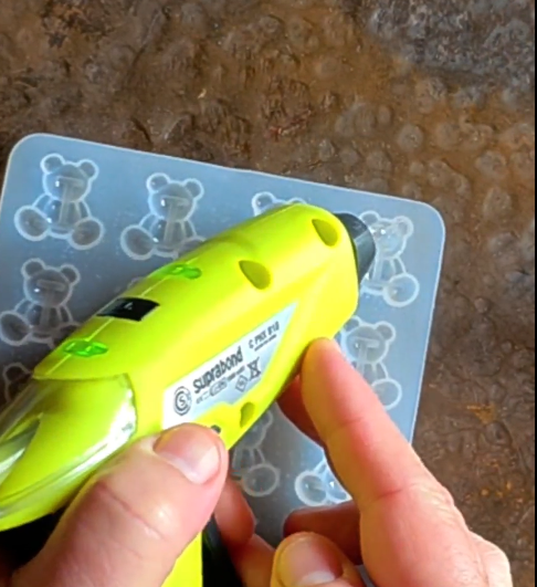2.- Con la Pistola Hot Melt Inalámbrica, rellenamos los ositos del molde. Los dejamos secar y vamos sacando uno a uno.