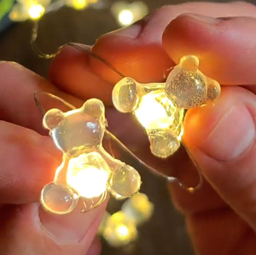3.- Con las luces que siempre utilizamos para navidad, vamos a ir pegando los ositos.