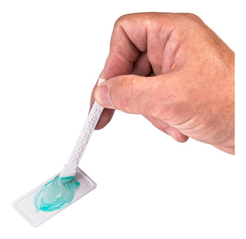 4. Juntar las partes a pegar y mantenerlas unidas hasta que la mezcla endurezca. Según la temperatura ambiente y la cantidad de Superpox Transparente, el pegado estará listo de 5 a 10 minutos, pero la fuerza de la unión seguirá aumentando hasta alcanzar su máximo en 24 horas.