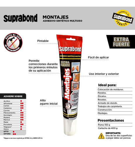 Es un adhesivo sintético multiuso de gran agarre inicial. Especialmente desarrollado para el instalador.