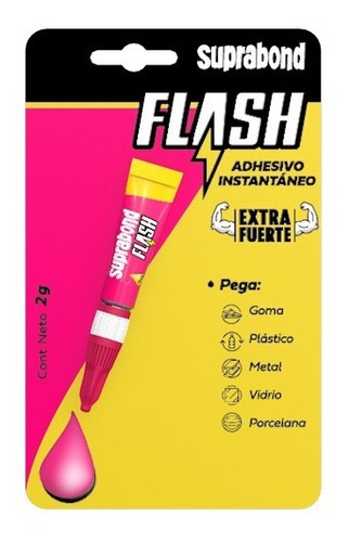 Una sola gota de Suprabond Flash pega en pocos segundos una gran variedad de materiales. Está especialmente diseñado para penetrar en espacios reducidos y se aplica fácilmente.