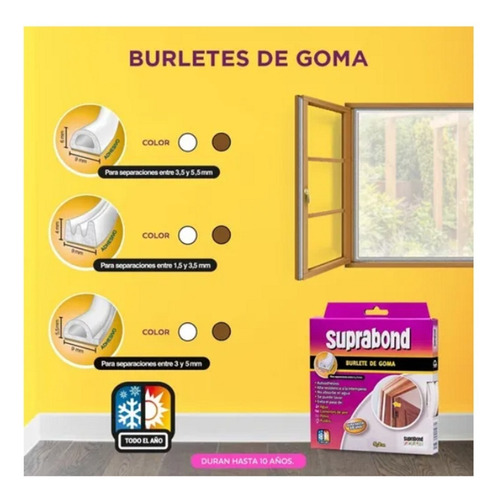 Burlete autoadhesivo. Dura hasta 10 años. Alta resistencia a la intemperie.