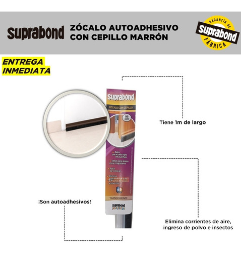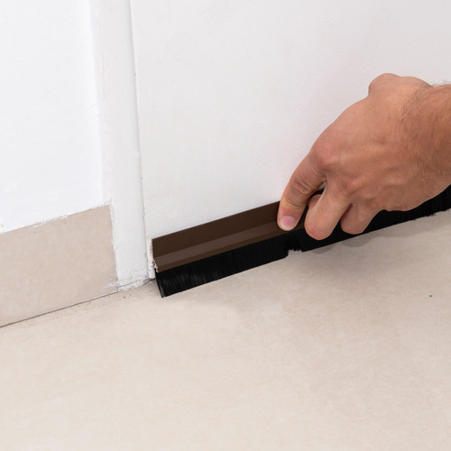 Aplicar el zócalo sobre la puerta de tal manera que el cepillo tenga un contacto suave con el piso. Ejercer presión firme durante algunos segundos para asegurar la buena adherencia.