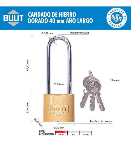 Candados de hierro dorado. Aro de acero cementado. Tambor de Bronce.