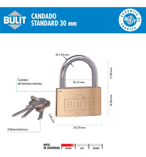 Candados con cuerpo de bronce macizo y aro cementado.
