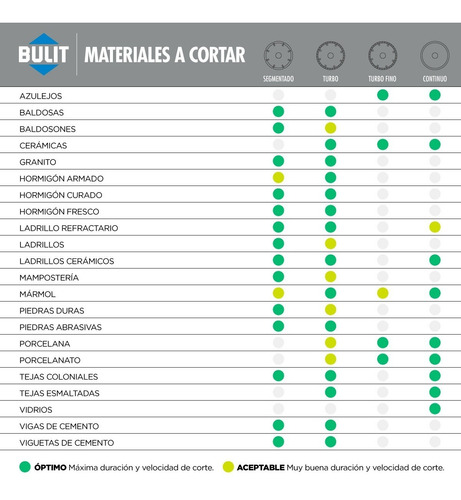 Los Discos diamantados BULIT serie 400 están desarrollados con la más alta tecnología aplicada a las herramientas de corte. Cada una de las series se diseñó buscando la optimización de rendimiento de cada tipo de usuario. La selección, cantidad y calidad de los diamantes utilizados, así como los exigentes controles a los que se somete cada lote garantizan su performance y vida útil.