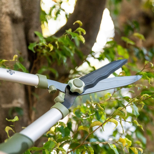 Tijera ideal para el corte de cercos, arbustos y otras tareas similares, Hojas antiadherentes de 21 cm Cuerpo de aluminio Rueda de ajuste de tensión de cuchillas Empuñadura soft ergonómica y antideslizante