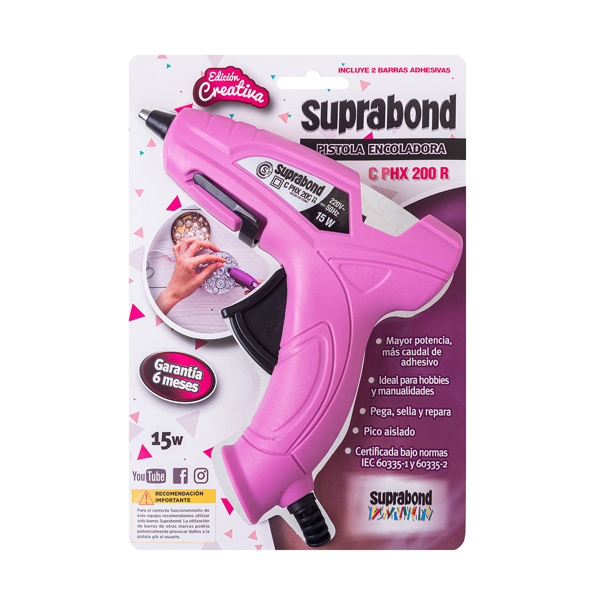 Ideal para hobbies y manualidades. Puede ser utilizada para reparar, sellar, pegar y decorar. Cuenta con pico aislado.