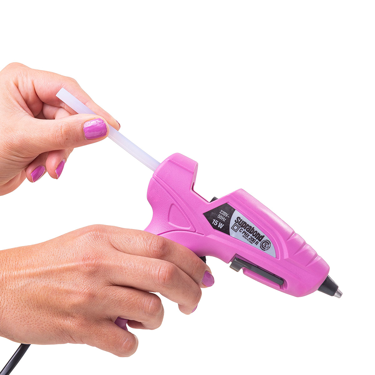 1. Introducir una Barra Adhesiva Suprabond de 0,74 cm de diámetro en el orificio trasero de la pistola.