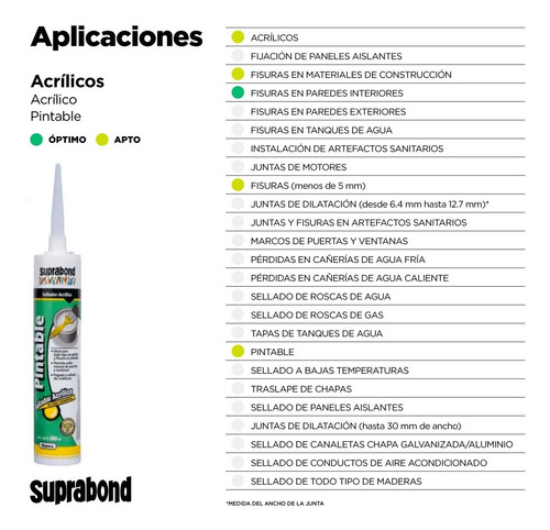 Sellador acrílico flexible de fácil aplicación. Es pintable con pinturas al látex y al aceite.