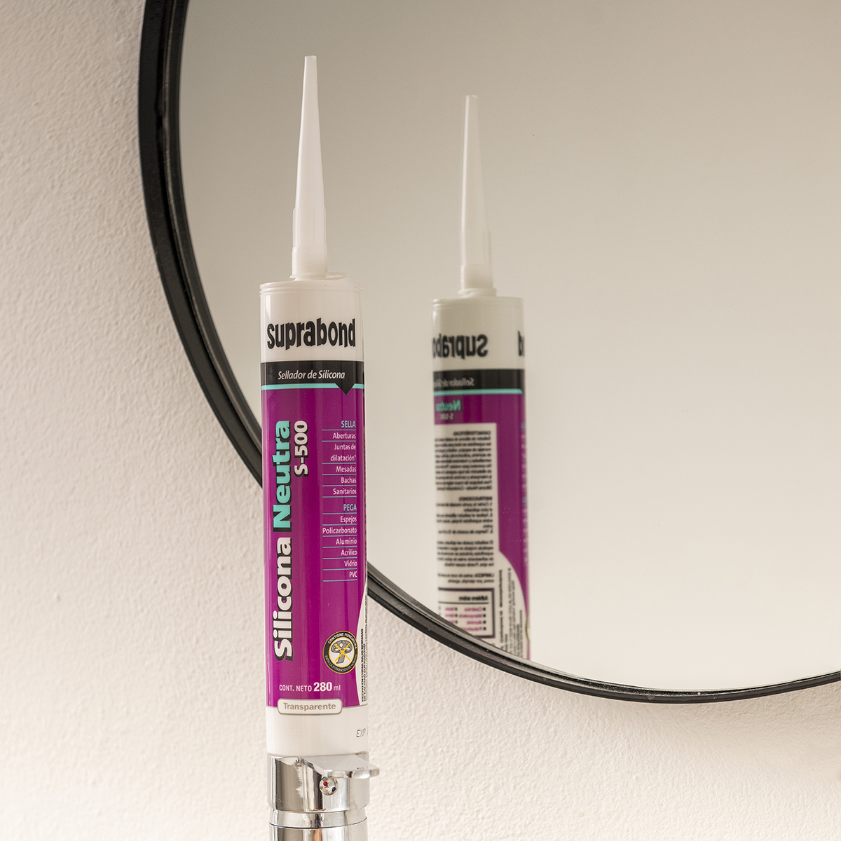 Sellador de Silicona de curado neutro. Como no ataca las superficies es ideal para utilizar en aplicaciones como: montajes de espejos, sellado y pegado de cerramientos de aluminio, policarbonato, acrílico, superficies esmaltadas y materiales fácilmente oxidables.