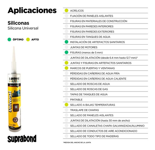 Sellador de silicona de gran versatilidad, apto para el uso en una gran cantidad de materiales.