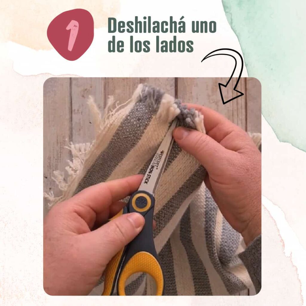 1 – Deshilachá uno de los lados del trapo para formar flecos.