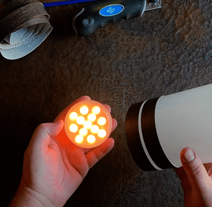 4.- Agarramos una luz que tengamos en casa, y la ponemos dentro del cilindro.