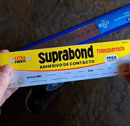 2.- Agarramos el tapacanto y medimos el cilindro para que nos quede perfecto a la medida que necesitamos, repetimos el paso ya que vamos a usar 2. Pegamos el tapacanto con Suprabond Transparente poniendo un poco y estirando con la espátula que te viene incluída en la caja.