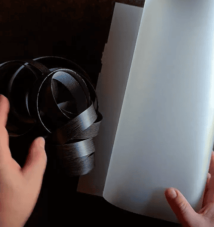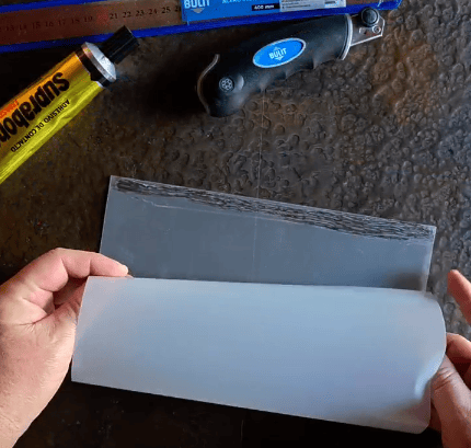 1.- Con la regla y el cutter BULIT, vamos a ayudarnos a cortar el acetato a la medida que querramos y luego formar un cilindro. En uno de los laterales pegamos con Suprabond Transparente EXTRA FUERTE. UN TIP: dejar secar 5 minutos y luego pegar ambos extremos para una mejor adhesión.