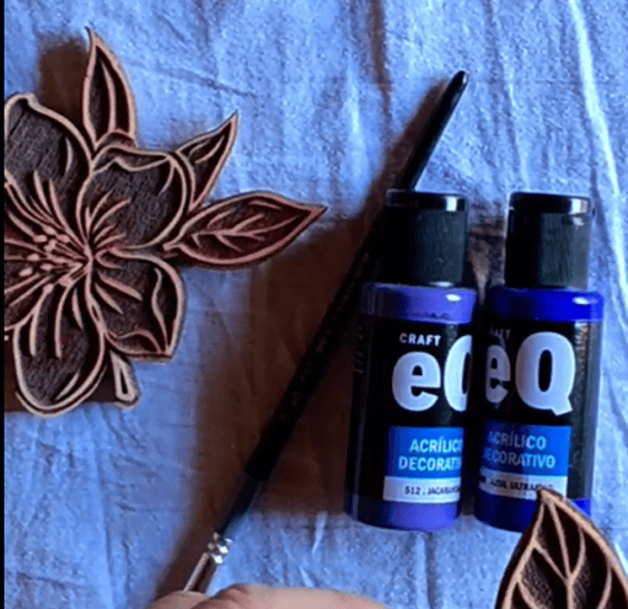 3.- Agarramos acrílicos o cualquier pintura que tengas en casa, y vamos a estampar con sellos. En este caso vamos a jugar con 2 tonos de azules que SIEMPRE quedan bien. Vos podés elegir los que más te gusten. 😊