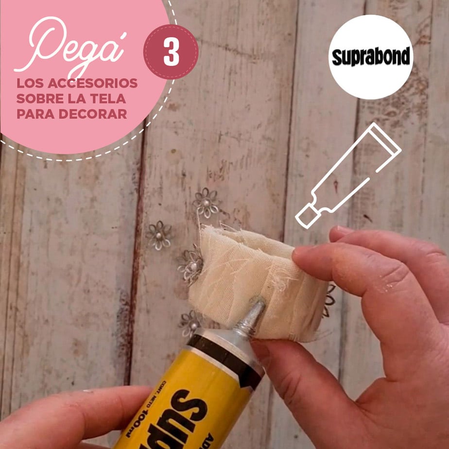 3- Pegá los accesorios que quieras sobre la tela para decorar, ¡y listo! ⁣