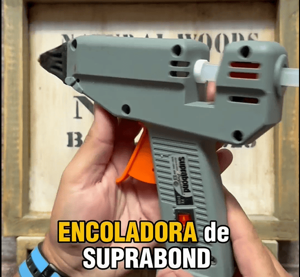 5.- Vamos a utilizar la Pistola Encoladora de Suprabond sobre la parte de atrás del cajoncito más chico para pegarlo con el más grande.