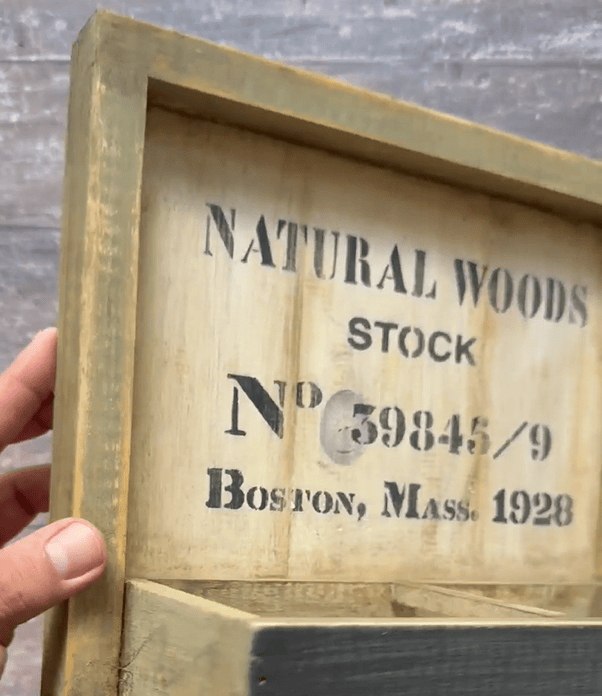 3.- Para darle un toque más especial, le agregamos un esténcil en la parte interna del cajón grande que vamos a utilizar como parte de atrás del proyecto. 💙